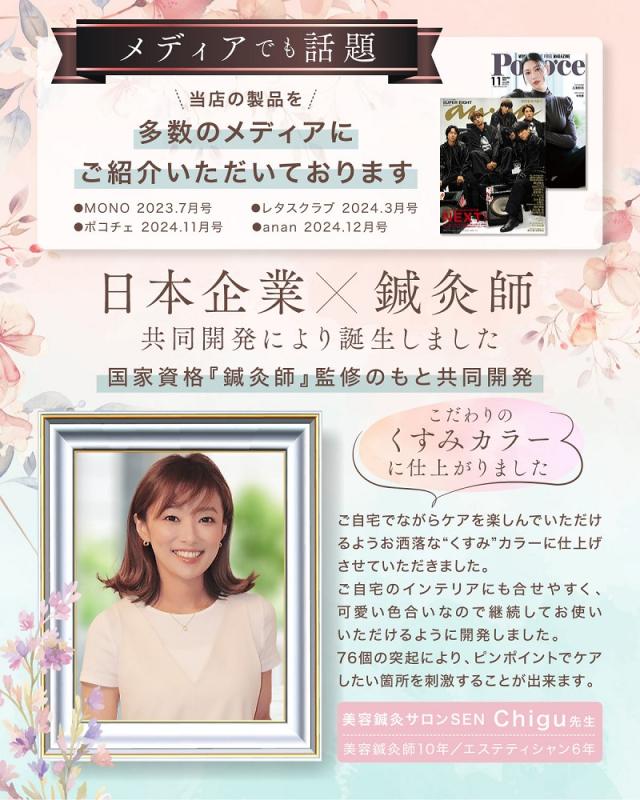 鍼灸師監修の使い方説明書付きを付属しております。初めての方でも効果的にお使いいただけるようイラスト付きで丁寧に解説しております。