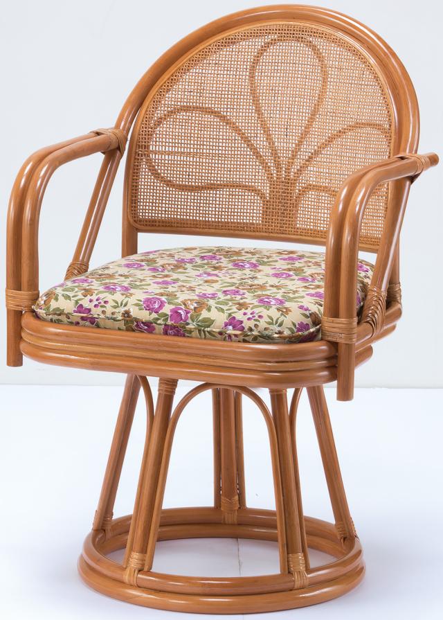 座椅子 天然籐肘付き回転チェア ハイタイプ 座面高43cm 東京ラタン 一部組立式 家具 インテリア お取り寄せ