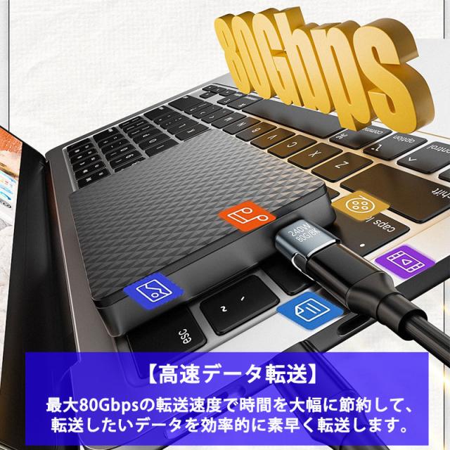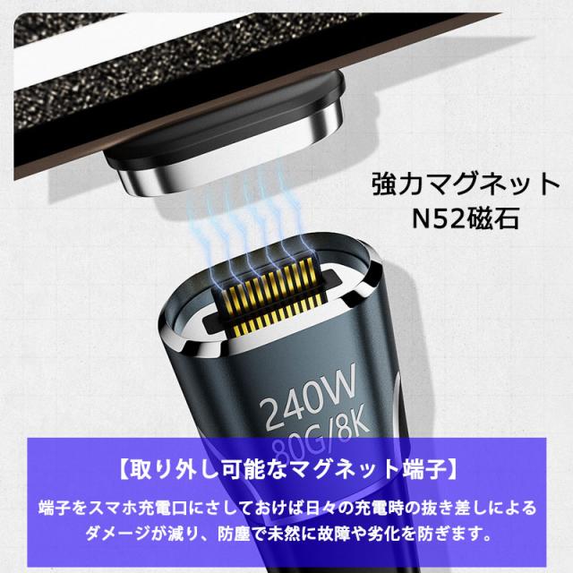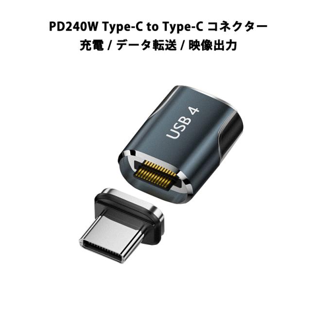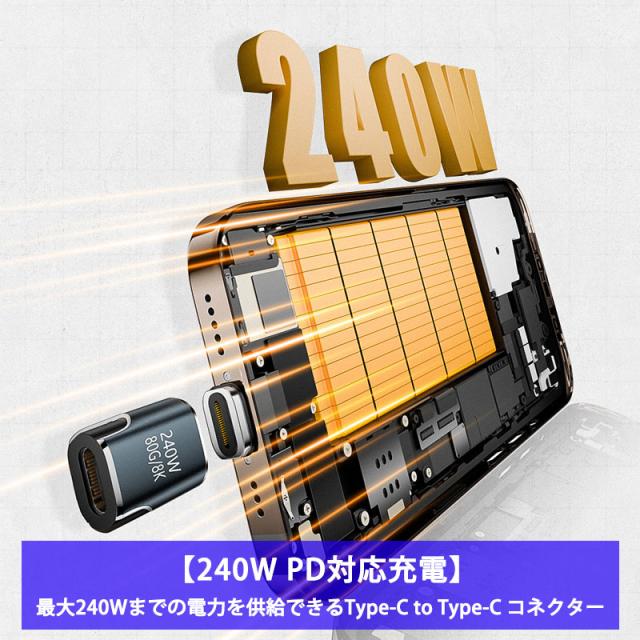 Type-C to Type-C コネクター 240W PD充電 48V 5A マグネット端子 タイプC アダプター 急速充電 データ転送 80Gbps 8K 映像出力 E-Marker 過充電防止 コンパクト USB C 端子 スマートフォン PC タブレット iPhone15 iPhone16 Galaxy Huawei Mac book Pro Air iPad Switch
