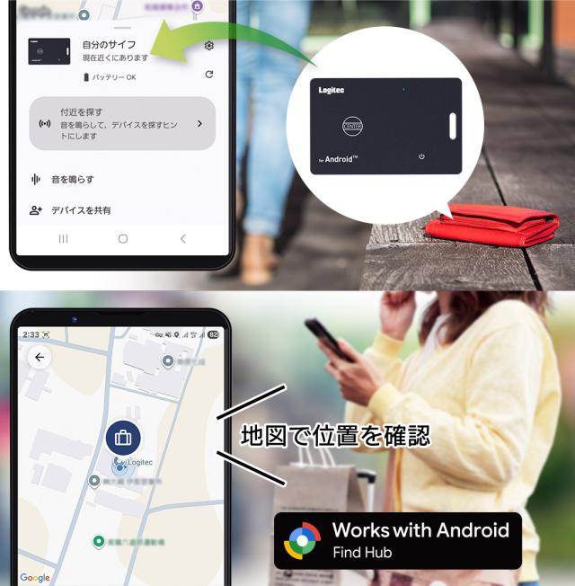 Google の「Find Hub」アプリから位置を確認!鍵や財布、かばんなど大切な荷物に付けて位置情報を追跡できるタグ型の紛失防止タグです。専用アプリ・ソフトのダウンロードは不要。鍵、財布、旅行バッグ、パソコンケースなど、失くしたくないものに付属させておくと、置き忘れや紛失した際、探しやすくなります。BluetoothでAndroid(TM)と連携し、標準搭載されている「Find Hub」アプリに登録するとタグの位置が地図上に表示され、位置情報を特定することができます。
