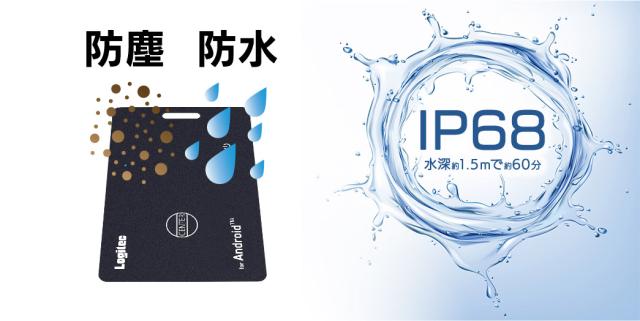 最高水準の防塵防水性能「IP68」を取得しています。埃等の侵入を防止し、万が一の水没にも耐える設計。雨中や、ビーチ、キャンプなど野外活動中でも安心して使用できます。