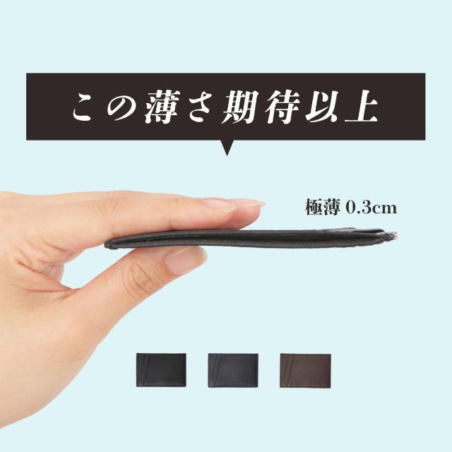 コンパクトさを追求し、厚さわずか3mmの超薄型デザイン。手のひらサイズに収まるサイズ感です。従来のカードケースと比較しても薄型で軽量なので、胸ポケットやズボンのポケットに入れてもかさばりません。