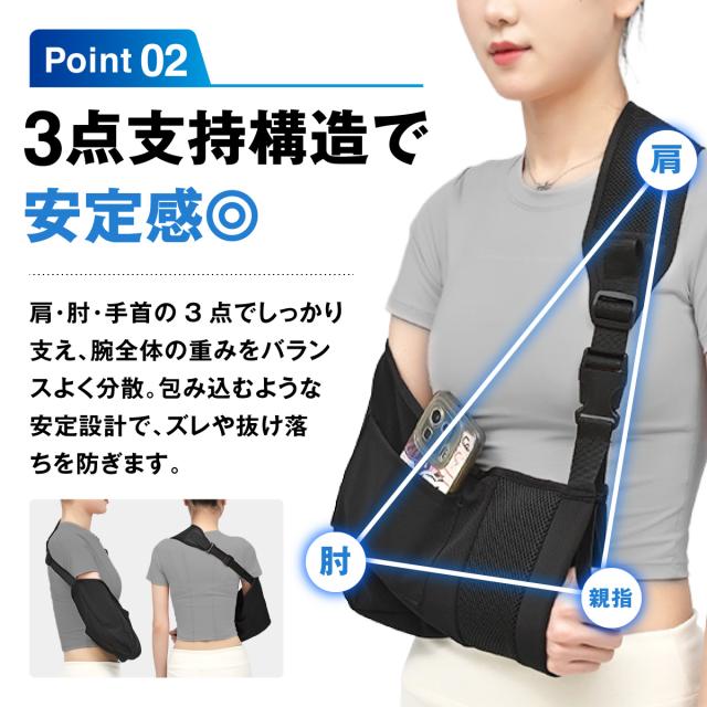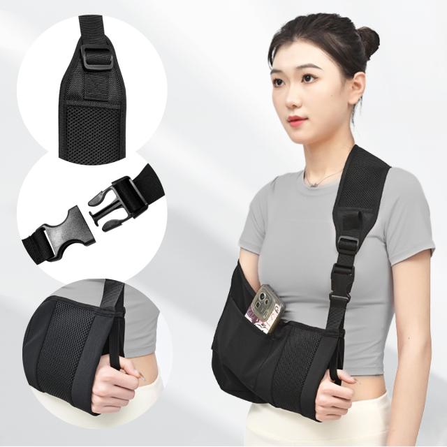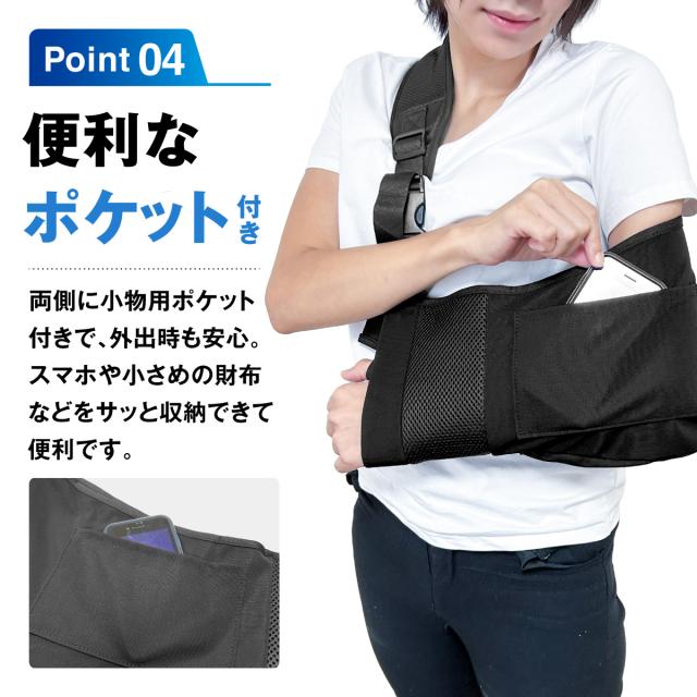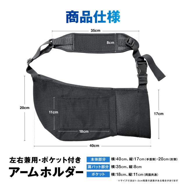 アームホルダー 三角巾 腕つり 骨折 脱臼 腕吊り アームスリング 固定 大人用 子供 メッシュ 通気性 左右兼用 腕 麻痺 怪我 ギブス 腕サポーター バンド 介護 リハビリ用 サポート 黒 ポケット 収納 送料無料