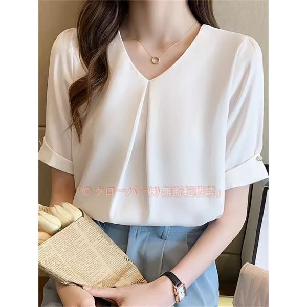 ブラウス 半袖 レディース tシャツ vネック オフィス 夏 ゆったり シフォン 無地 おしゃれ 大きいサイズ着痩せ 通勤 通学 カジュアル 体型カバー きれいめ
