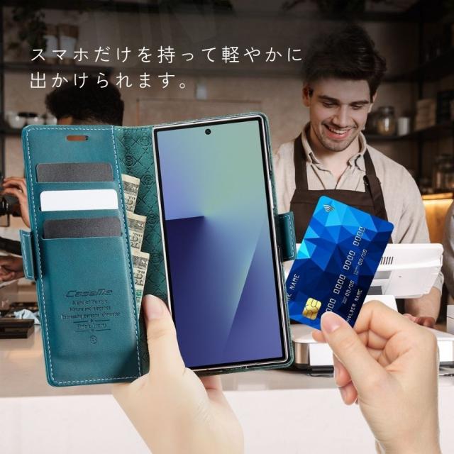 【マルチ収納ポケット搭載】 カードや名刺、紙幣などをスマートに収納。財布とケースが一体化するので、スマホだけを持って軽やかに出かけられます。