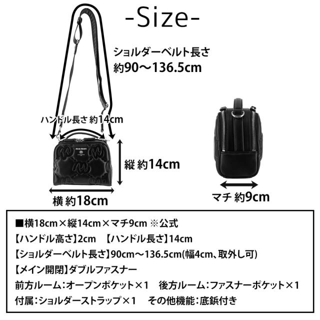 | サイズ(約) ※当店実寸値 | 公式サイズ 横18cm×縦14cm×マチ9cm 【ハンドル高さ】2cm 【ハンドル長さ】14cm 【ショルダーベルト長さ】90cm〜136.5cm(幅4cm、取外し可) | ||