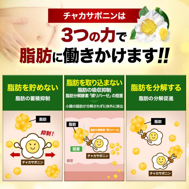 ダイエットサプリ 体重 体脂肪 中性脂肪 内臓脂肪 皮下脂肪 ウエスト周囲径 BMI を減少 脂肪吸収抑制【茶っ花りシボシボルン】チャカサポニン配合 茶花 機能性表示食品