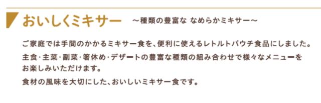 ・ご家庭では手間のかかるミキサー食を、便利に使えるレトルトパウチ食品にしました。