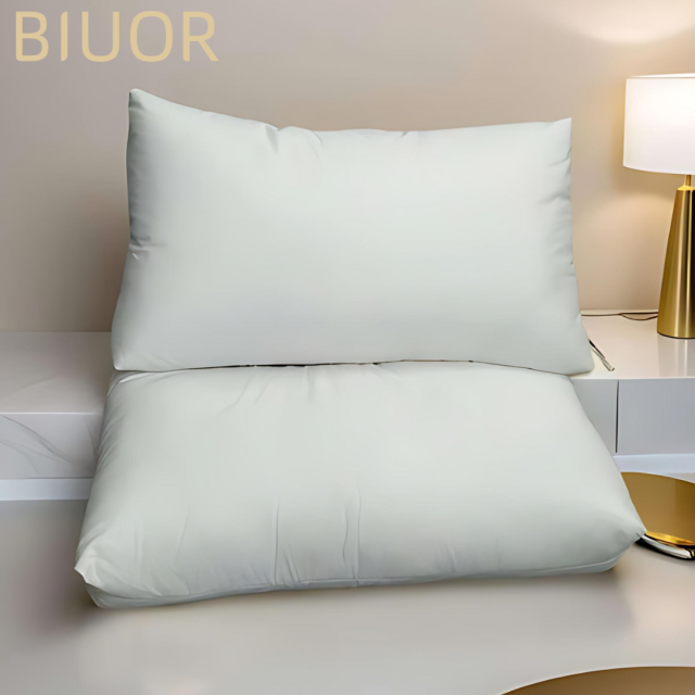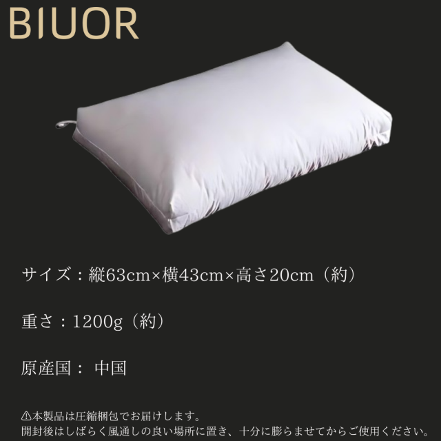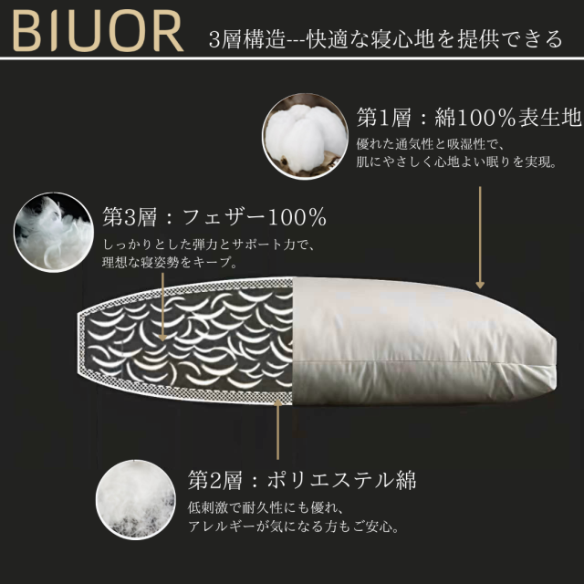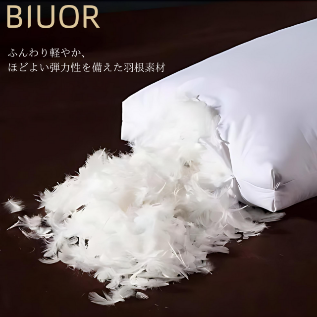 【送料無料】 BIUOR フェザー枕 羽根まくら 羽毛枕 フェザーピロー フェザー100% 1200g ホテル仕様 3層構造 高密度コットン 送料無料 高め やや硬い