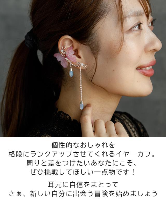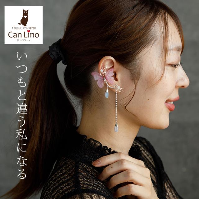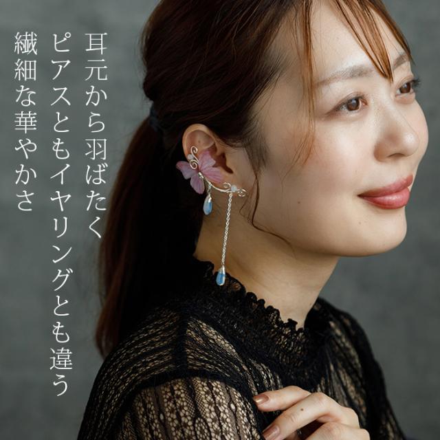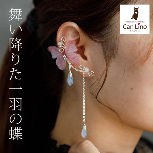 イヤーカフ イヤークリップ シルバー バタフライ ピンク 一点物 ハロウイン レディース イヤリング フープ チェーン ウエディング パーティー バンド ライブ 痛くなりにくい