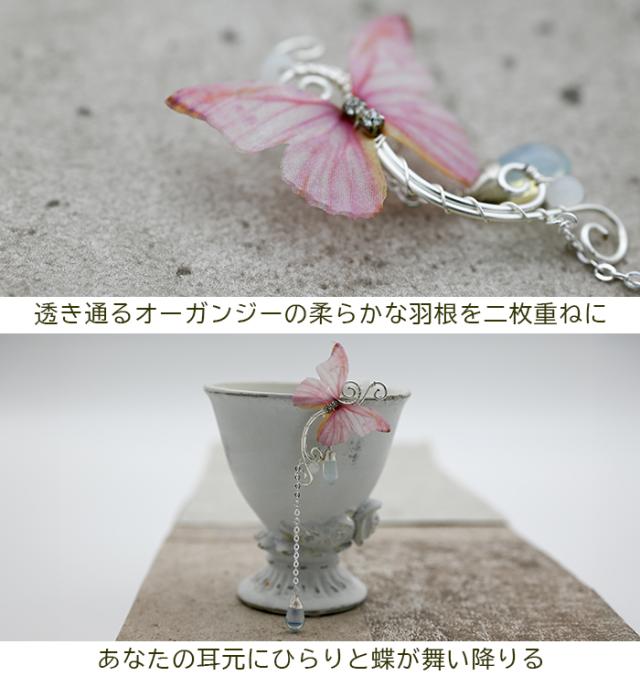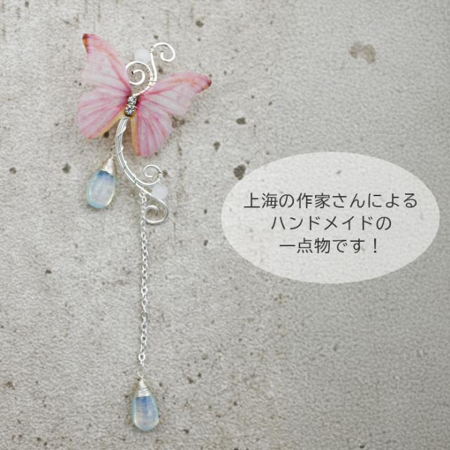 | イヤーカフ イヤークリップ イヤリング シルバー バタフライ 蝶 ピンク 羽根 【ハンドメイド 一点物】 |