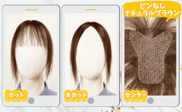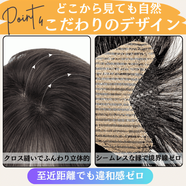 マジックテープの強力な粘着力でウィッグをしっかり固定し、動いてもズレにくくなります。安心して日常生活を過ごせます 前髪裏地の縁まで丁寧に編み込むことで、ウィッグの境界がまったく分からない仕上がりに。どの角度から見ても地毛のように自然で、ウィッグであることを忘れるほどの一体感を実現 |