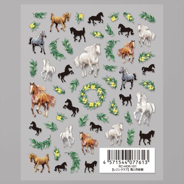 Resin club(レジンクラブ) 埋め込みレジンシール 馬と月桂樹 アクセサリー パーツ 88×150mm 1個 動物 植物 レジン用 封入 レジン資材 問屋 レジン用品 レジンシール レジン封入 ハンドメイド資材 うま 葉 さや工房 手作り アクセサリーパーツ 卸 おすすめ
