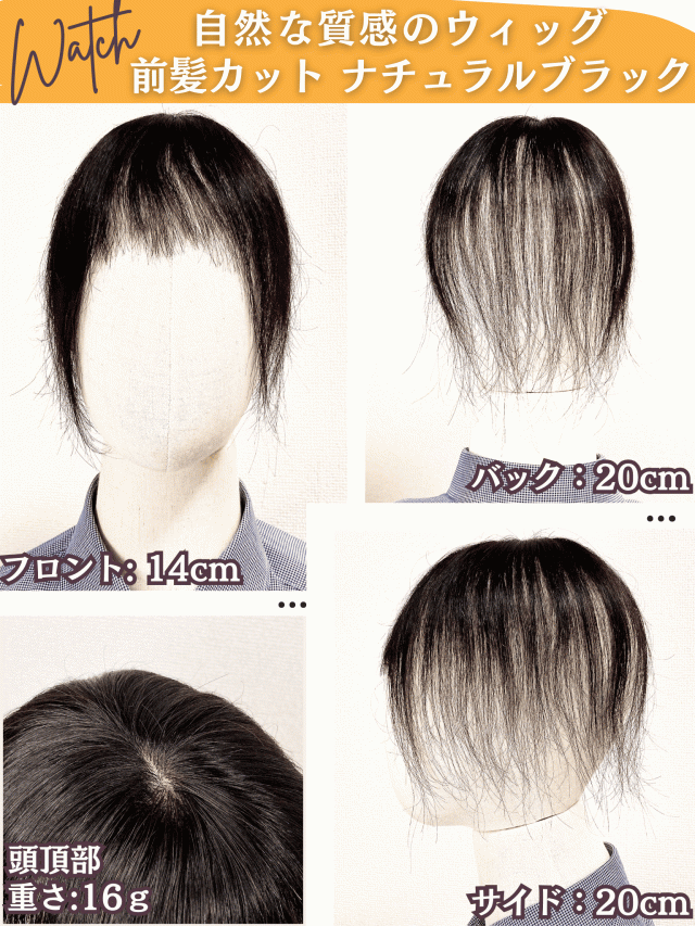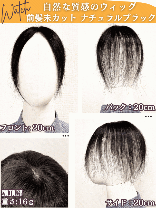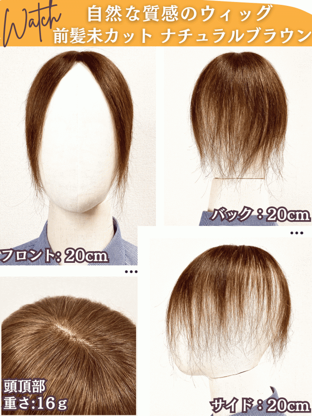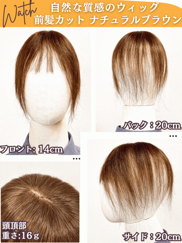 前髪カット フロント14cm / バック 20cm / サイド 20cm / 重さ 約 16g 前髪未カット フロント20cm / バック 20cm / サイド 20cm / 重さ 約 16g |