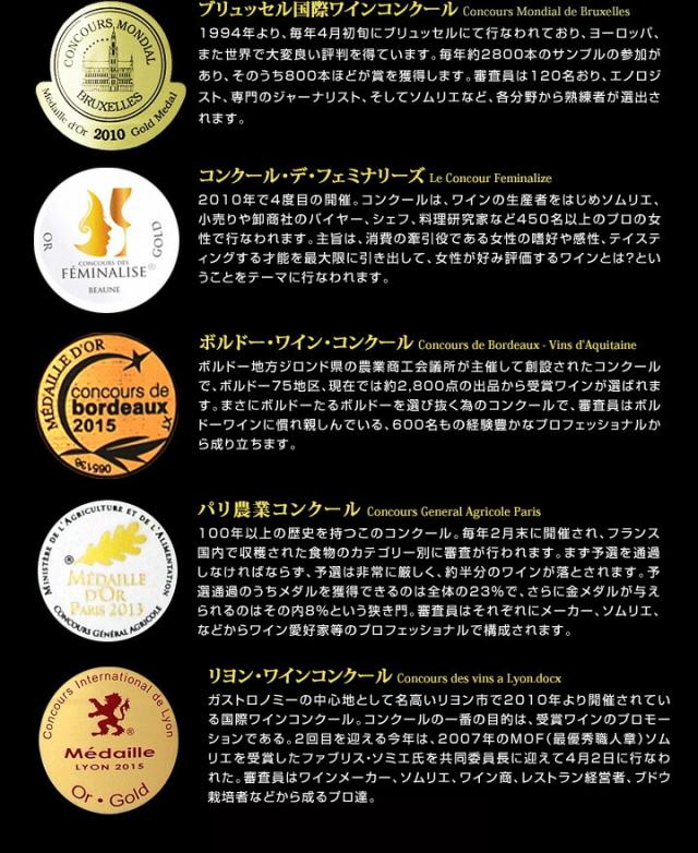 これまで何千本というワインを試飲してきた 当店ワインスタッフが、金賞ワインの頂点だけを厳選しました!! 当店ワインが選んだのは、名ばかりの金賞ワインではなく、 実際に飲んで本当に美味しい最上級の金賞ワインだけ!! 金賞は数あれど、本当に美味しいと思った金賞ボルドーだけを 必ずテイスティングをして、厳選して選び抜いたオススメの6本!