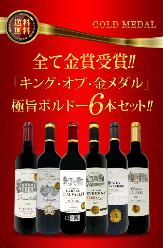 【送料無料】第281弾!全て金賞受賞!「キング・オブ・金メダル」極旨ボルドー赤ワイン6本セット!