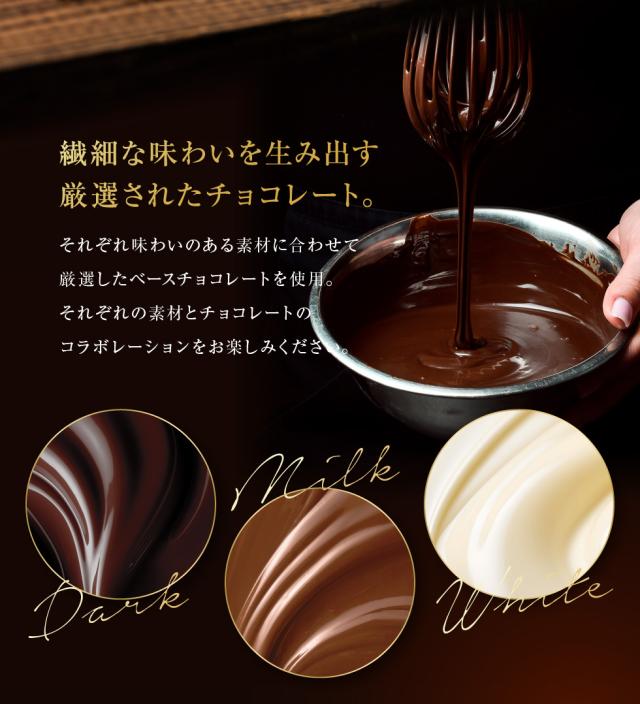 チョコレート(ベルギー製造、国内製造)、カカオニブ、ココアバター/乳化剤、香料、(一部に乳成分・大豆を含む)