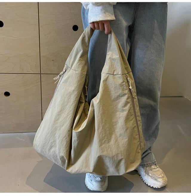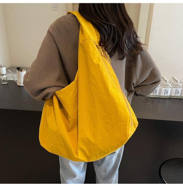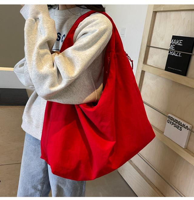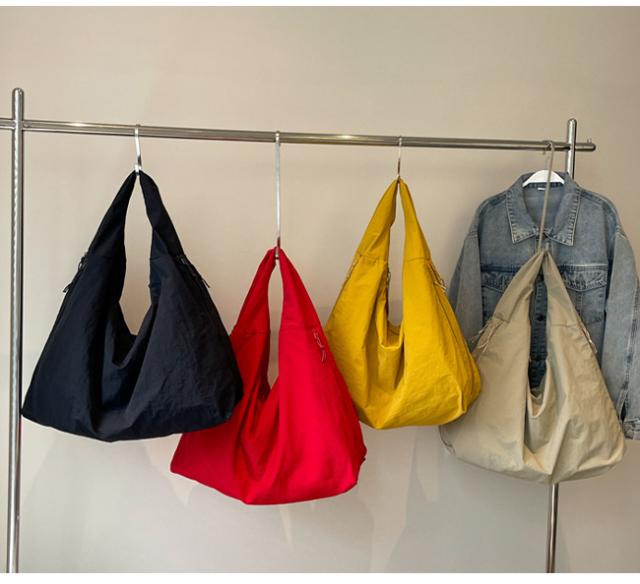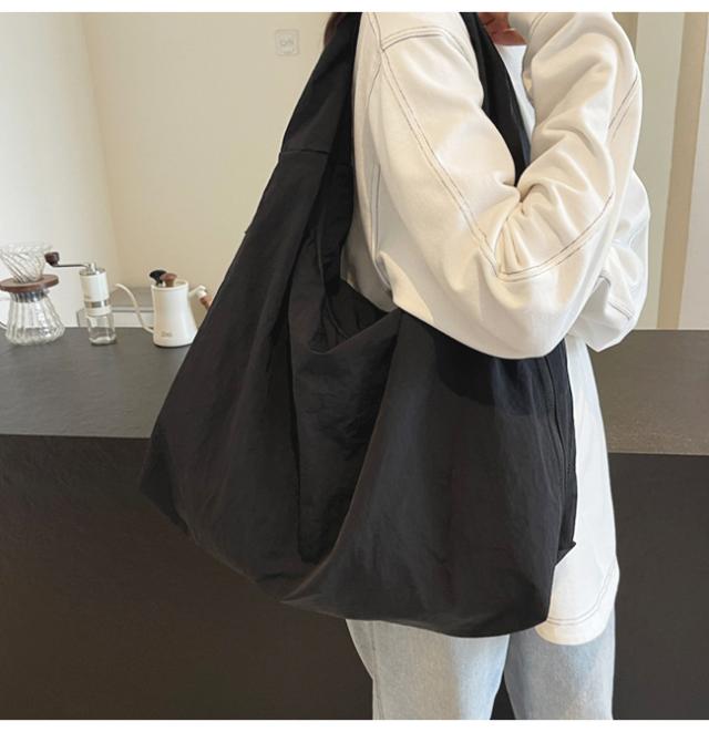 肩掛けもしやすい長めのハンドルで、手持ちでも肩掛けでもOK。無地のデザインはコーディネートを選ばず、カジュアルにもきれいめにもマッチします。
