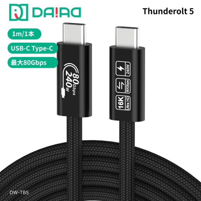 Thunderbolt 5 DAIAD Type-C 240W PD3.1 USBC ケーブル 80Gbps 16K 映像出力 USB4 / 3.2 下位互換 メッシュ編み 高速充電 データ転送 iPhone16 iPad MacBook Galaxy タブレット 多機種 幅広い互換性 多機能 サンダーボルト5 ケーブル