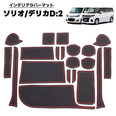 SOLIO ソリオ DELICA デリカ D:2 対応 車用 インテリアラバーマット ドアポケットマット ノンスリップマット フロアマット コンソールマット ゴムマット 内装パーツ 耐久性 車の滑り止めシート アクセサリー 保護カバー 20ピース ブラック×レッドライン