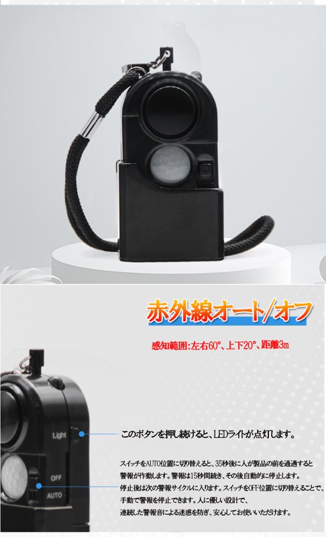 ・赤外線センサーの範囲は前面60℃、距離3mでアラームが鳴り響きます。