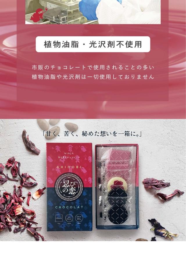 チョコレート 植物油脂不使用 SHINOBI CHOCOLAT シノビショコラ 5枚入り 忍びの恋 赤・黒・白のアソート 天然由来色100% 合成着色料不使用 ギフト 手土産 バレンタイン