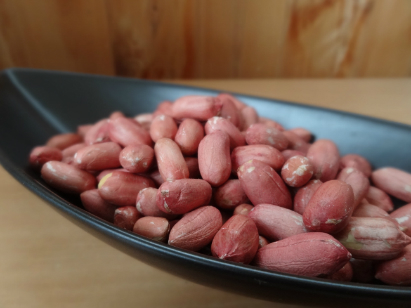 こちらは加工する前の生落花生です。品種は千葉県産の最高級品種千葉半立。そのまま煎って、煎りたての風味を楽しむもよし、茹でて味付けして、茹で落花生として楽しむのもよし、ごはんと一緒に炊飯して落花生ごはんにするもよし。いろいろな使い方ができます。