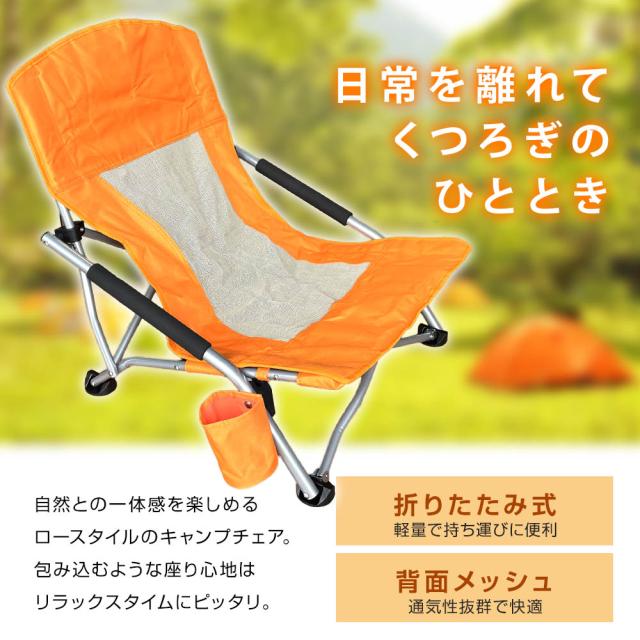 アウトドアチェア ロースタイルチェア キャンプチェア ローチェア ロースタイル 肘掛け ひじかけ キャンプ 椅子 イス 耐荷重150kg コンパクト 軽量 収納袋付き オックスフォード 通気性 安定 持ち運び