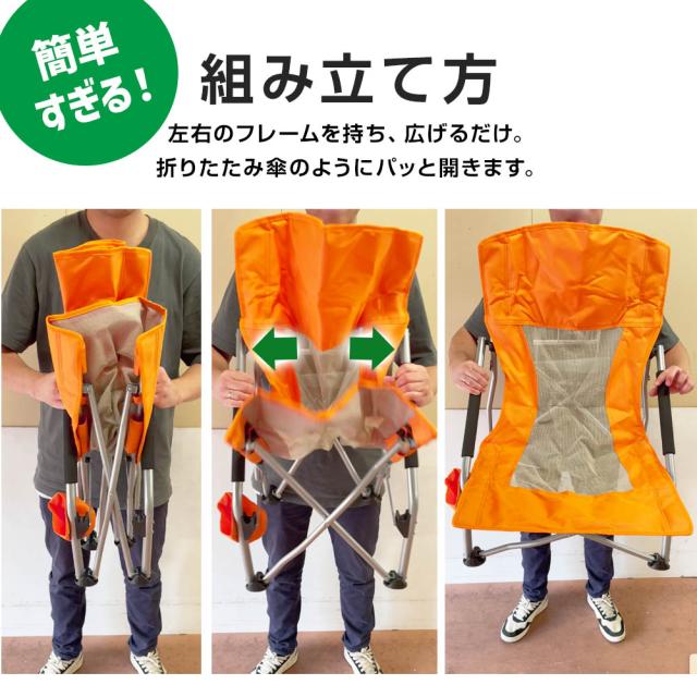 ゆったり座れるワイドなサイズ感ながら、撤収時はスリムに折りたたみ可能。
