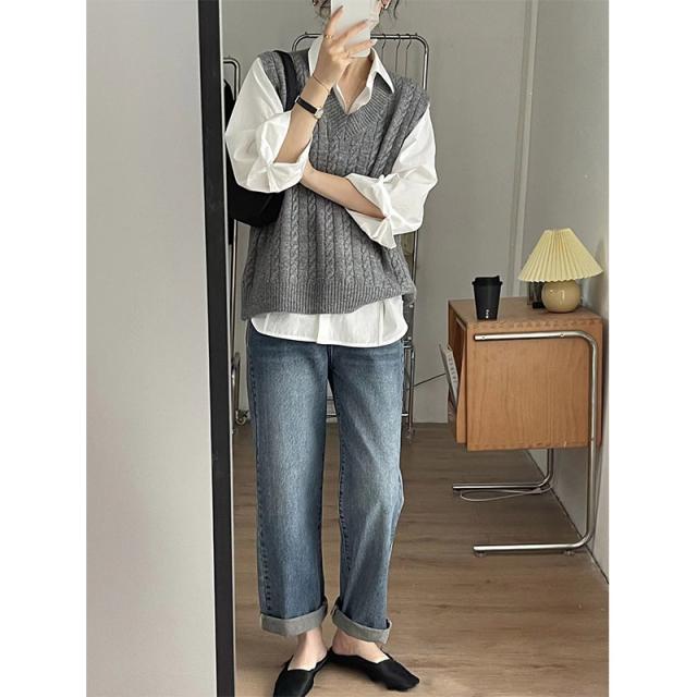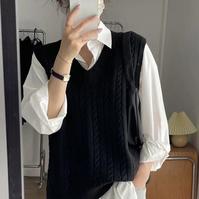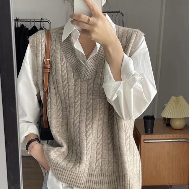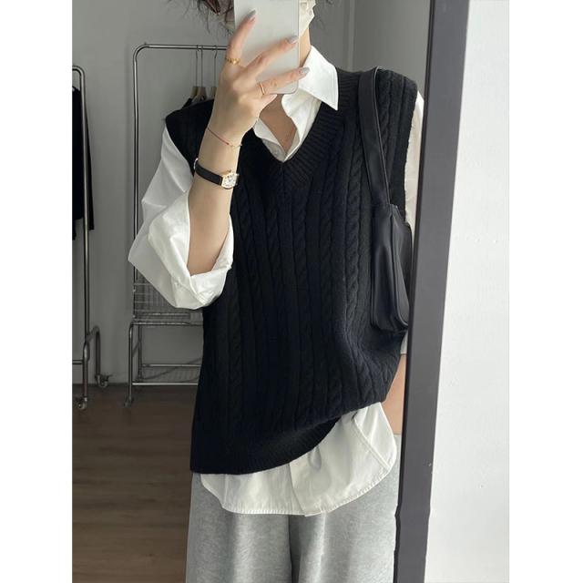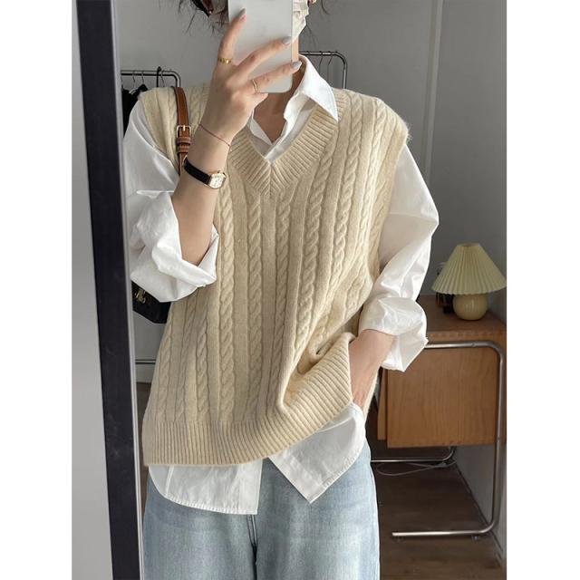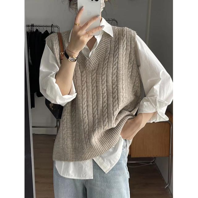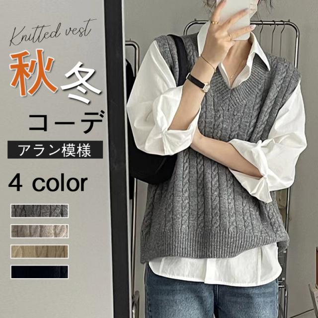 ニットベスト カーディガン セーター レディース 春 秋 冬 レイヤード 重ね着 体型カバー 韓国風 ゆったり 着痩せ アラン模様 オーバーサイズ