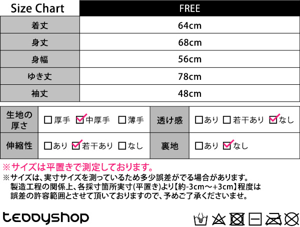 製造工程の関係上、各採寸箇所実寸(平置き)より【約-3cm〜+3cm】程度は