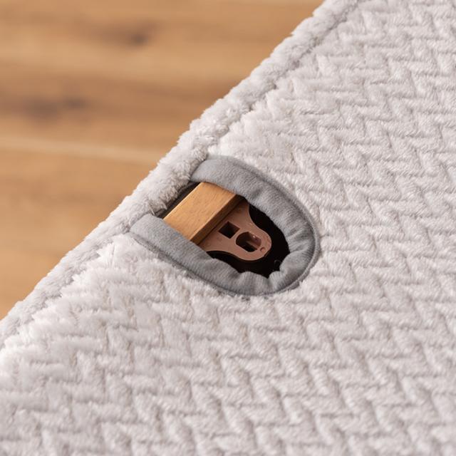 ふわふわと軽い薄手の生地で、オフシーズン中もコンパクトに収納。角の折り込み仕様で広がりにくく、スッキリとしたデザインです。