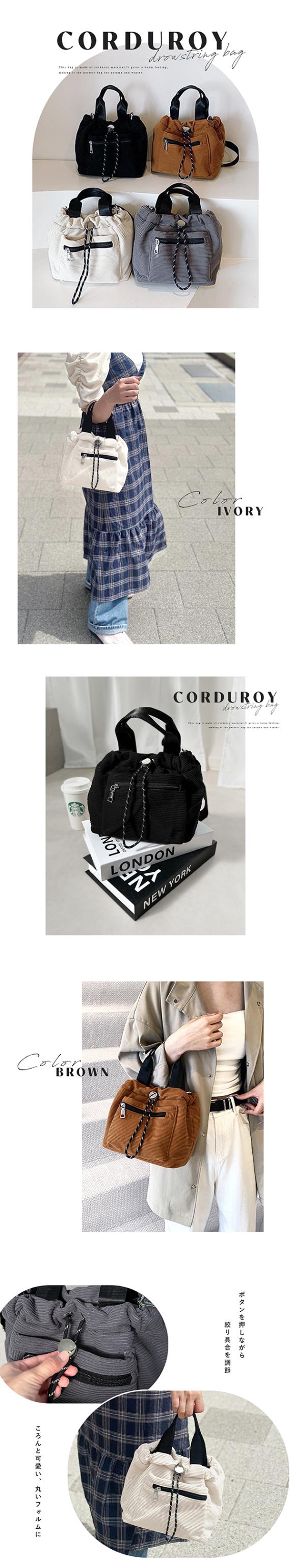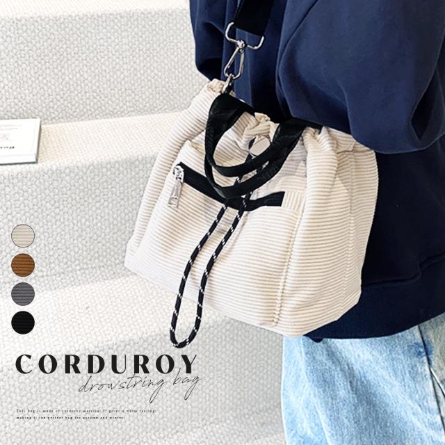 コーデュロイ 巾着バッグ レディース ショルダー トート 巾着 ポケット 2WAYバッグ やわらか 手触り 軽量 大容量 仕分け かわいい きれいめ カジュアル おしゃれ 斜めがけ 通勤 通学 送迎 お出かけ ママバッグ 旅行バッグ 収納ポケット付き 秋冬 バッグ プレゼント ギフト