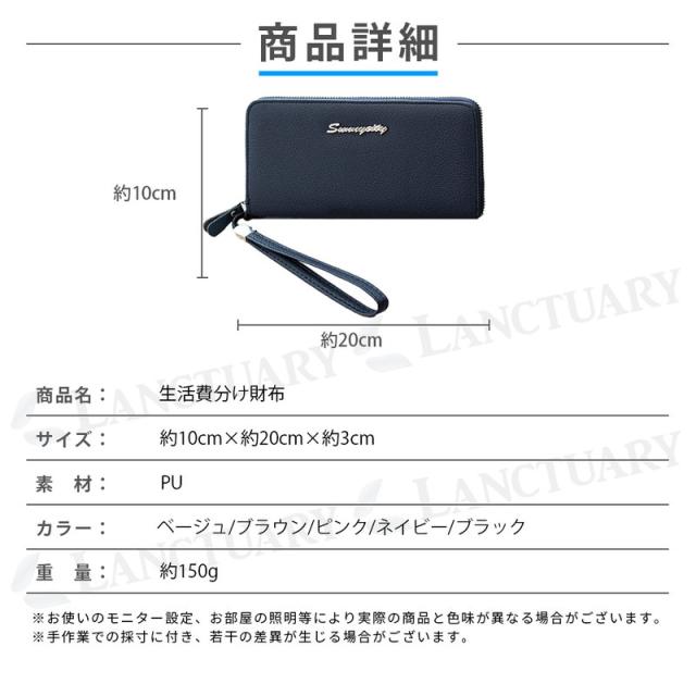 | 主な仕様 | 商品名: 生活費分け財布 素材:PU サイズ: 約10×約20×約3cm カラー: ベージュ/ブラウン/ピンク/ネイビー/ブラック |
