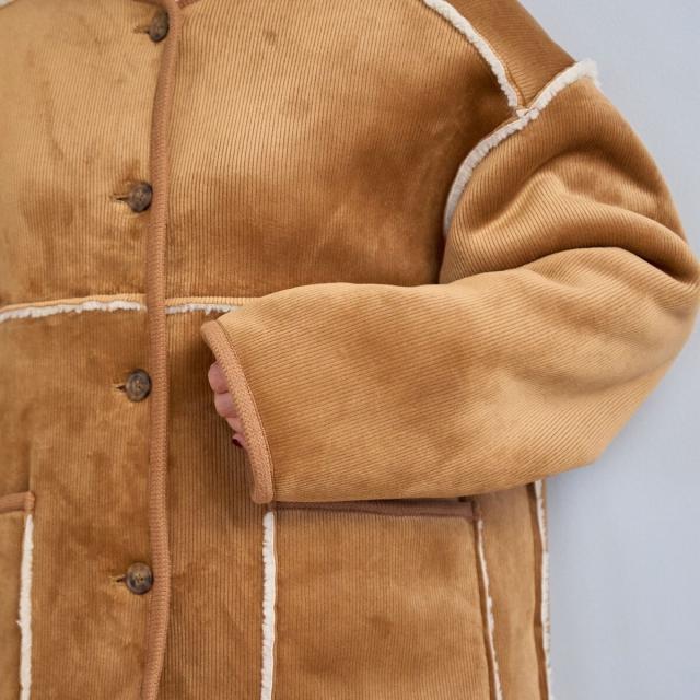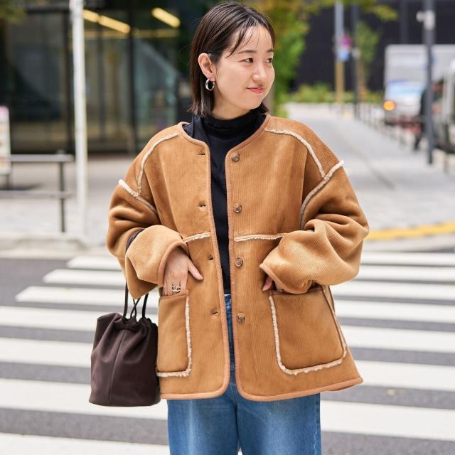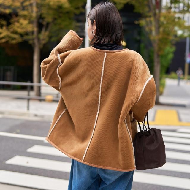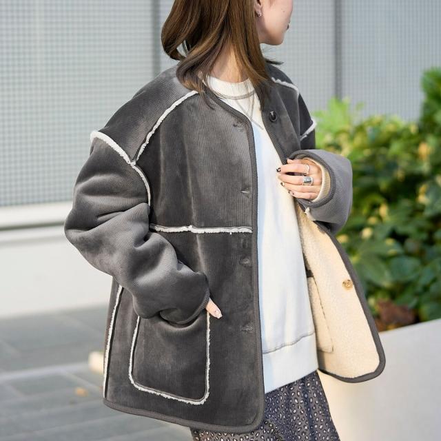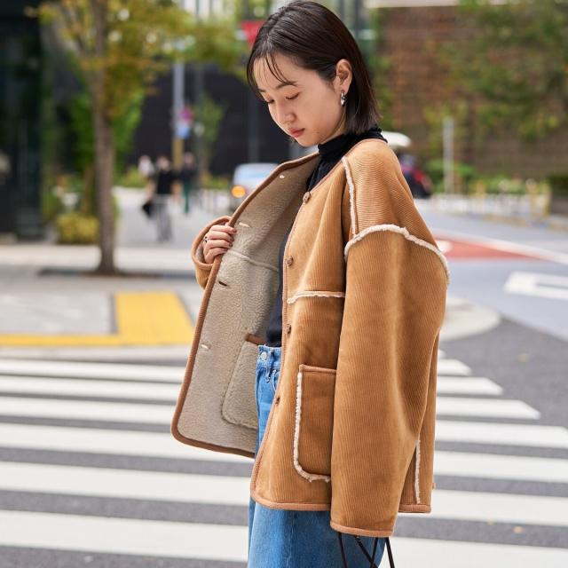 コーデュロイ×ボアの異なる素材感が魅力のアイテム。着こなしの幅が広がります。