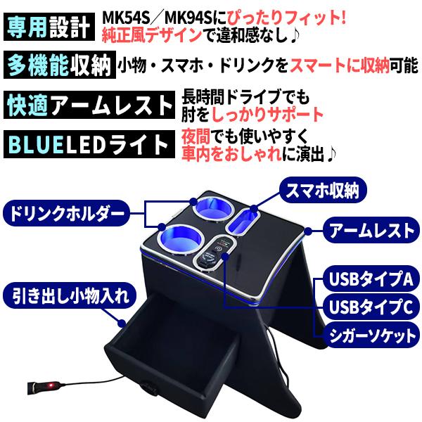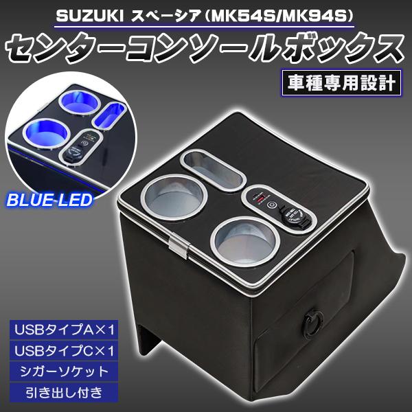 スペーシア コンソールボックス MK54S MK94S コンソール ボックス ギア カスタム センターコンソール アームレスト カップホルダー 内装 収納 小物入れ カスタム パーツ 車 収納 ドリンク スマホ ホルダー LED