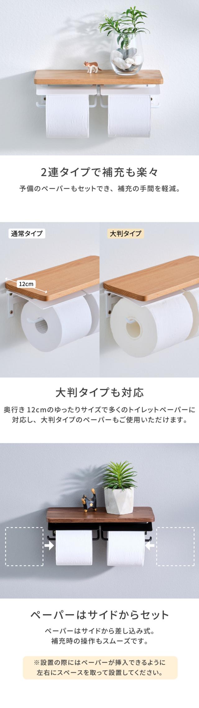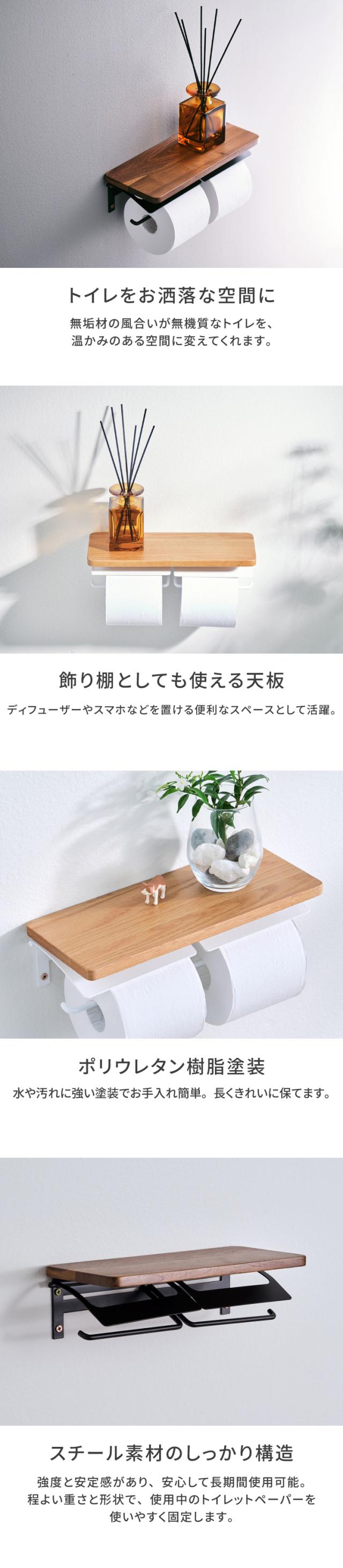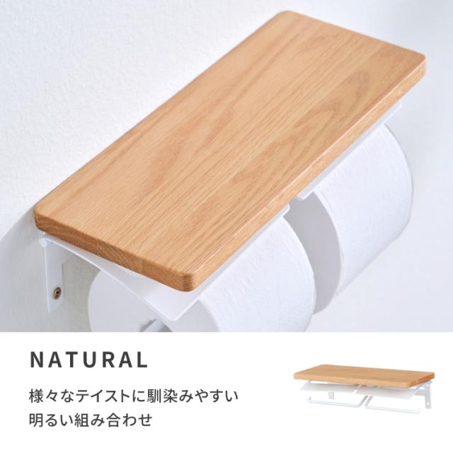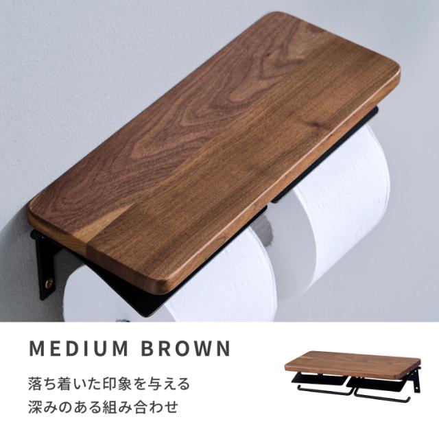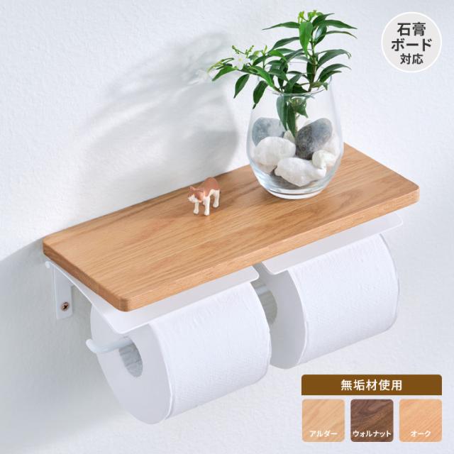 【2/23限定!ポイント10倍!】 トイレットペーパーホルダー 2連 おしゃれ ダブル 木製 ペーパーホルダー トイレ 棚付 アルダー材 ウォルナット材 オーク材 アイアン 大判 トイレットペーパー コストコ 収納 ディスプレイ FORBI ISSEIKI