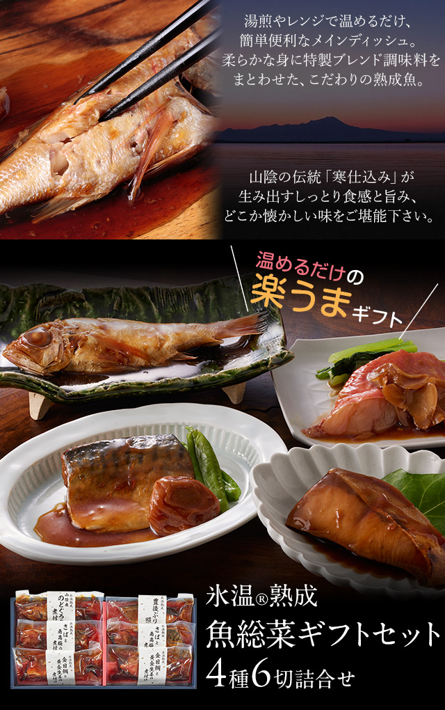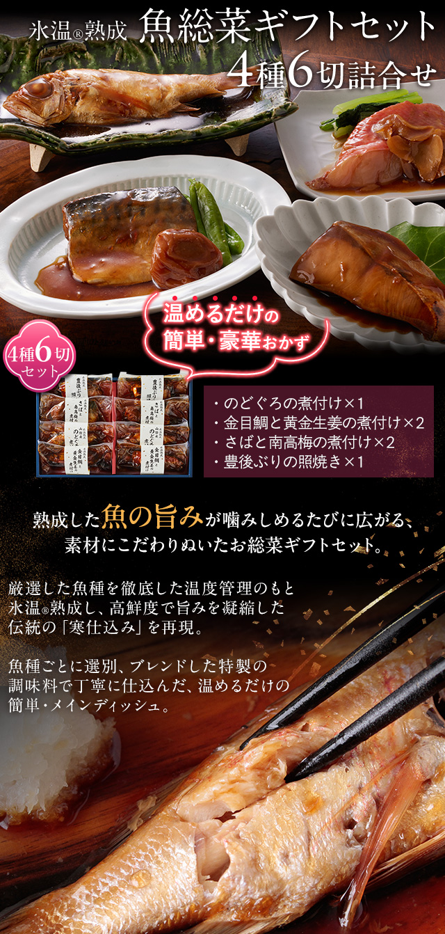 お歳暮 ギフト 氷温熟成 こだわりの魚総菜4種詰合せ(のどぐろの煮付け・金目鯛の煮付けほか6切入) プレゼント ギフト 送料無料(北海道・沖縄を除く)
