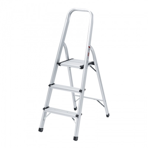 軽くて錆びにくいアルミ製の、折りたためる業務用脚立です、3段タイプ。