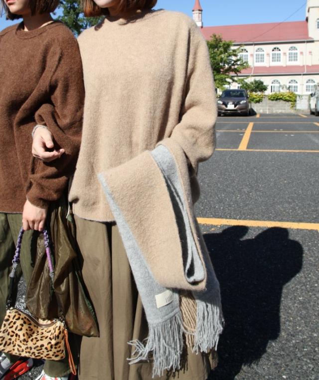 2カラーを組み合わせたバイカラーの組成が特徴。柔らかな起毛による滑らかな肌触りと、ボリューム感のある編地で保温性と軽量感を両立。今シーズンの新作プルオーバーには、同素材のプルオーバーもあるので、コンビで着用しても◎。