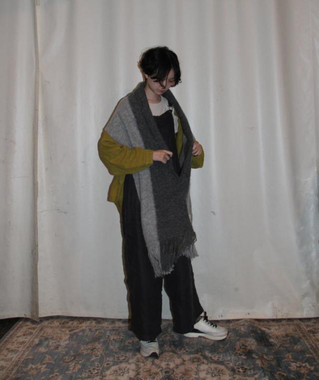 バイカラーデザインを採用し、着用時に表に出るカラーを自由にカスタマイズ可能。ワンカラーとしても、レイヤードカラーとしても使用できる汎用性の高いマフラー。フリンジ付きの長め丈だから、巻き方次第で多彩な表情を楽しめる。シンプルながらも個性的なデザイン。コーディネートのアクセントに最適。