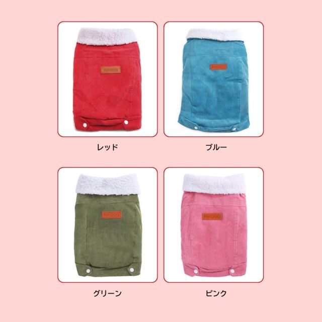 犬用 ジャケット 冬服 コート 防寒 おしゃれ ペット服 裏ボア あったか 小型犬 中型犬 コーデュロイ S M L XL 4カラー