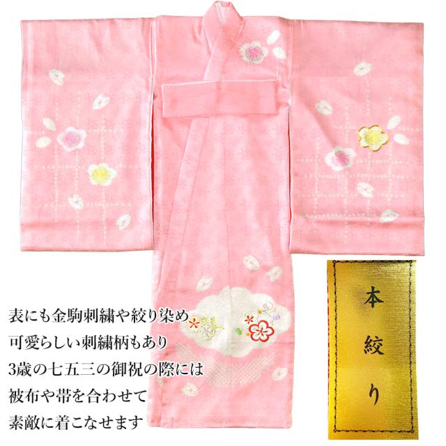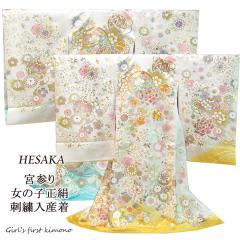 お宮参り 着物 女の子 正絹 産着 長襦袢付 日本製 販売 祝着 宮参り 本絞り金駒刺繍 【 初着 祝着 産着 女の子 子供