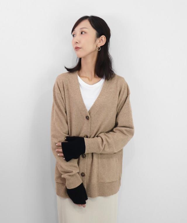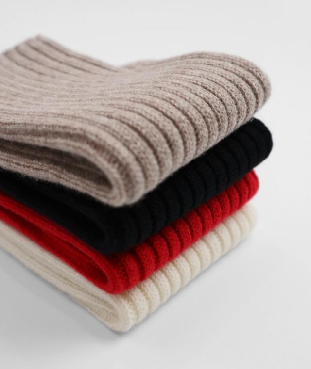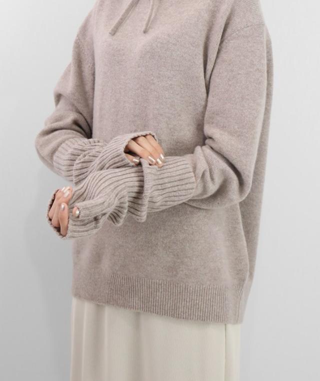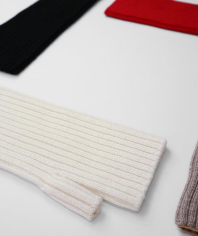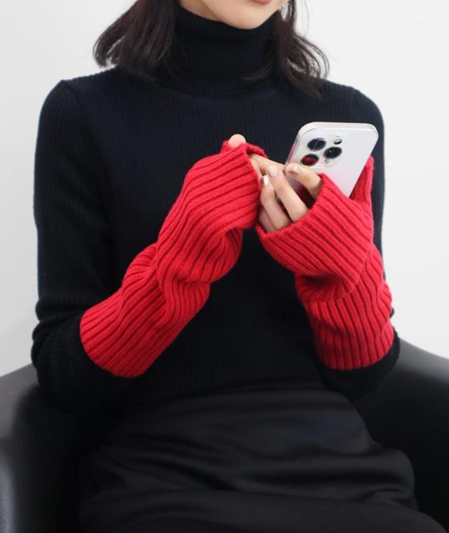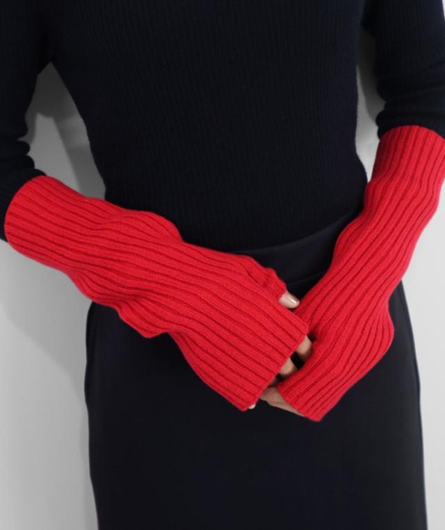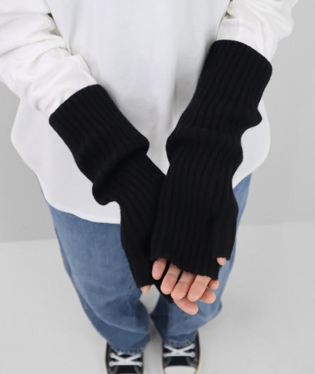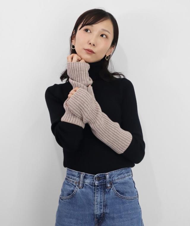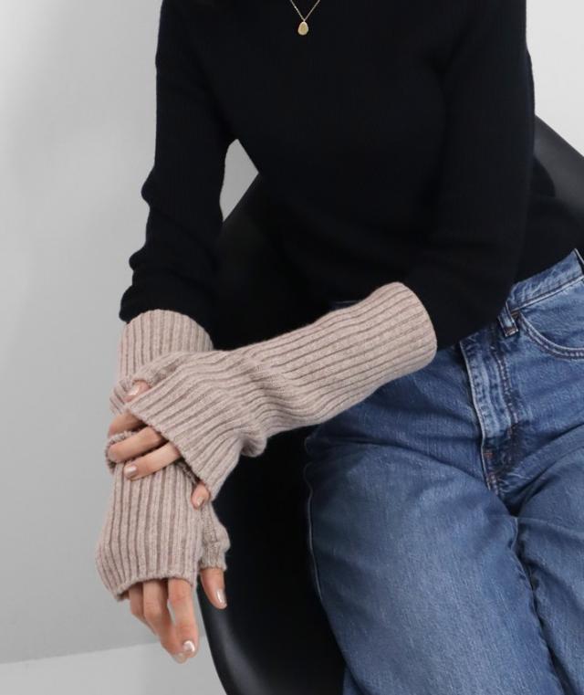 編地は10ゲージの2×2リブ編みを採用しています。カシミヤ100%アームウォーマーよりもゆったりとした着け心地です。ボリューム感があり、よりカジュアルな印象に。