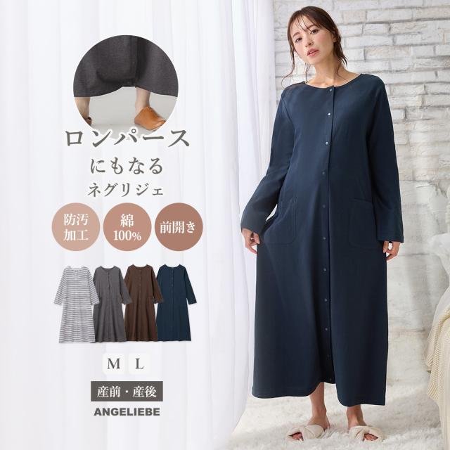 【防汚加工】【2WAY】綿100%前開き長袖ネグリジェ マタニティ・授乳パジャマ【産後も長く着れる】