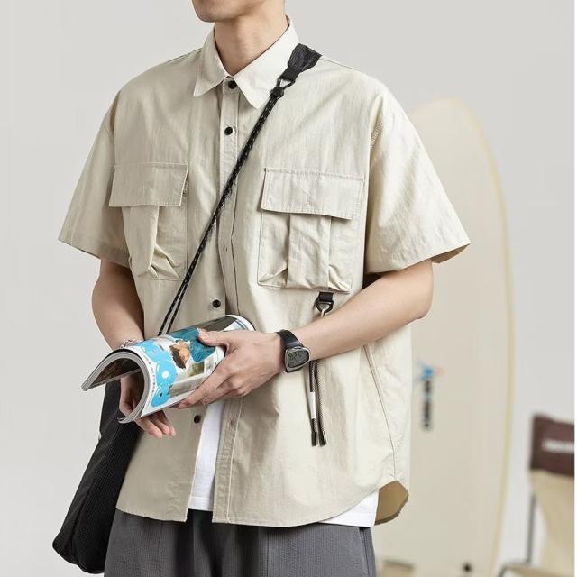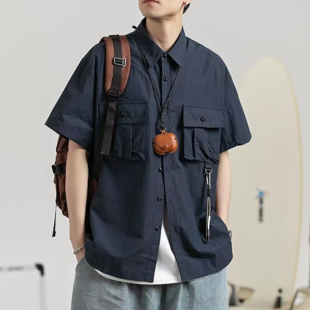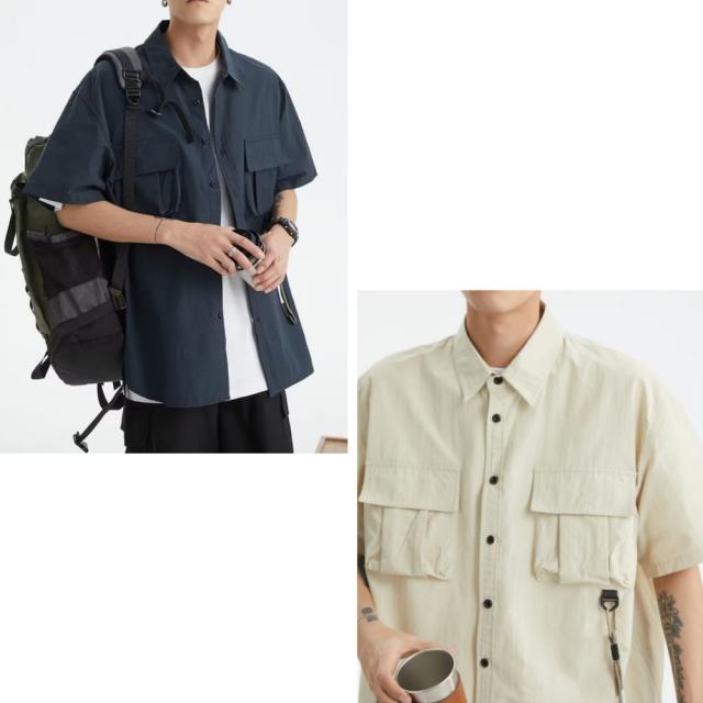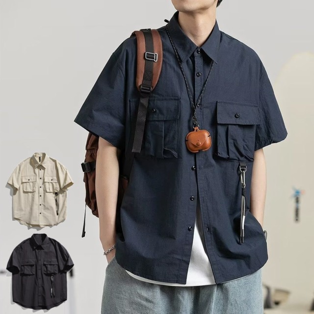 半袖 カジュアルシャツ メンズ ワークシャツ 半袖シャツ 薄い 無地 #TS322c2 胸ポケット サマーシャツ ミリタリー 大きめ トップス M便