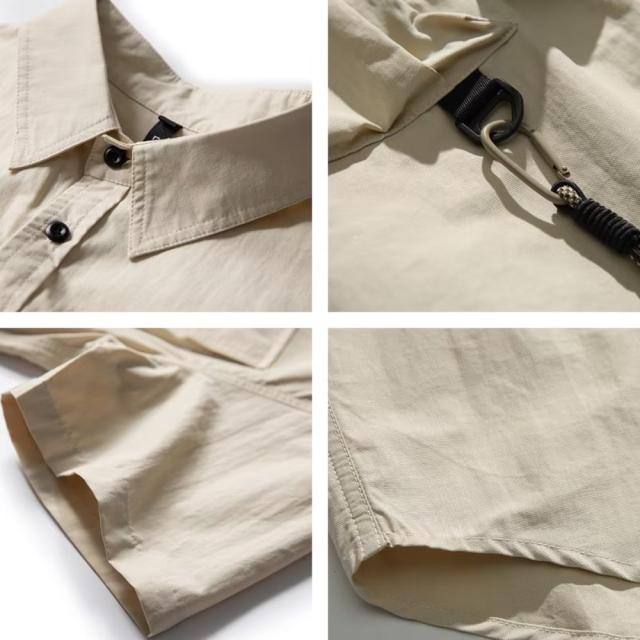 薄手でハリのあるポリエステル素材で、暑い季節にも嬉しいサラリとした着心地のハーフスリーブシャツ
