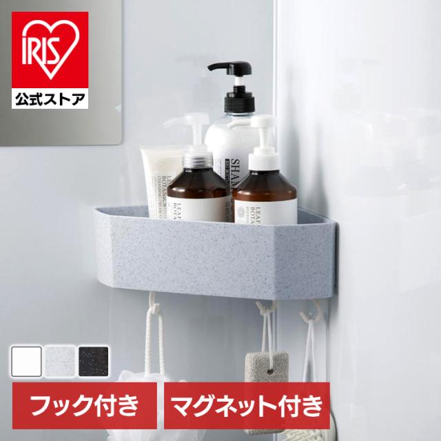 (検索用:コーナーラック・バスラック・浴室ラック・収納・小物収納・ホワイト・マグネット・抗菌加工・フック・スペース活用・4973221078386・4973221078379・4973221078591)