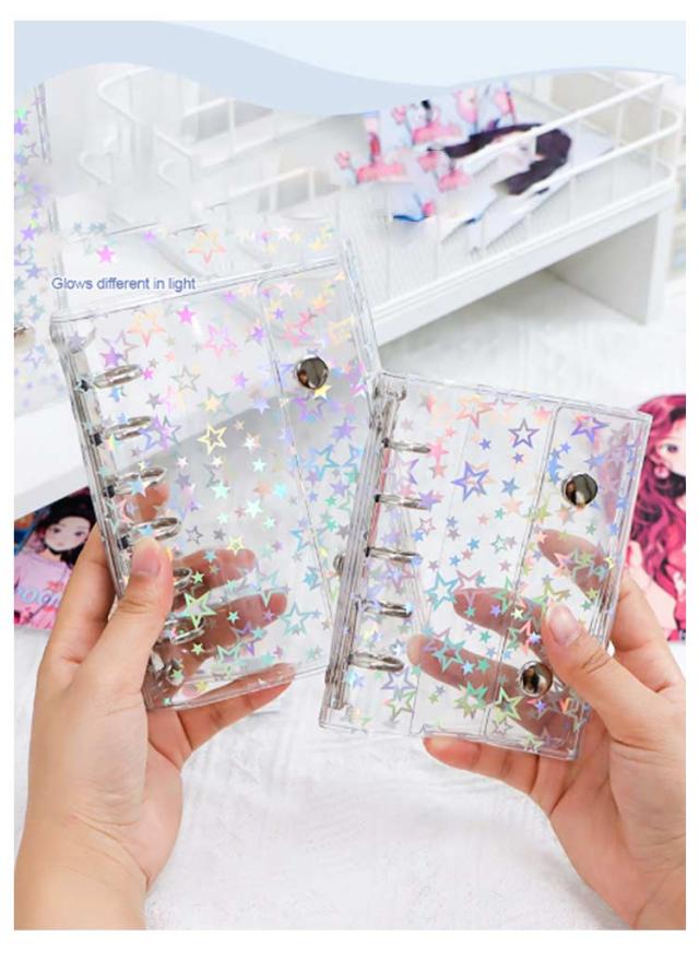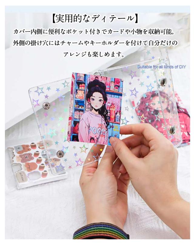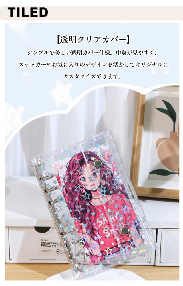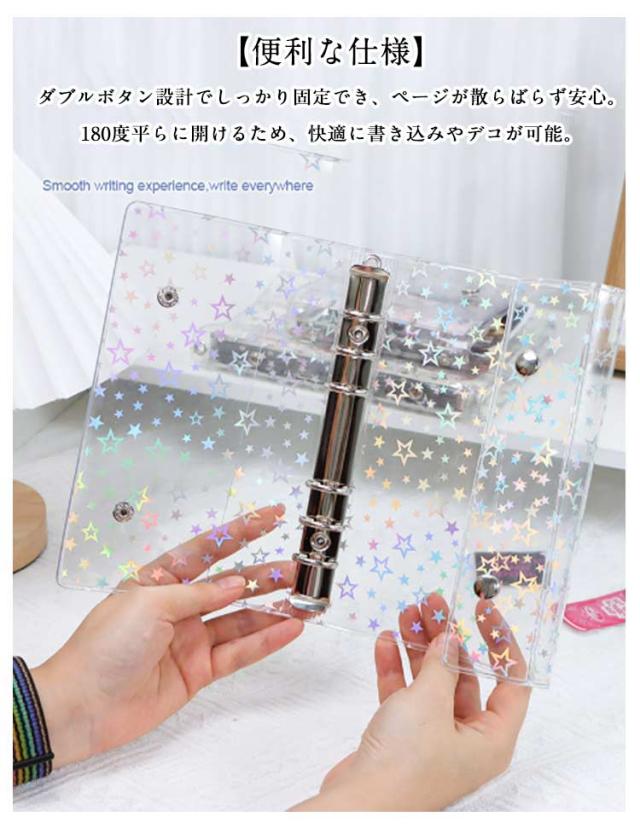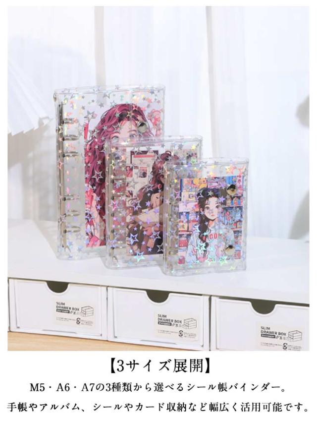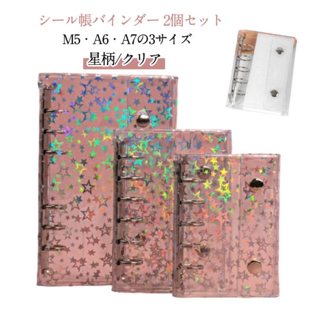 | シール帳バインダー 2個セット M5・A6・A7の3サイズ 星柄/クリア 【3サイズ展開】M5・A6・A7の3種類から選べるシール帳バインダー。手帳やアルバム、シールやカード収納など幅広く活用可能です。 【透明クリアカバー】シンプルで美しい透明カバー仕様。中身が見やすく、ステッカーやお気に入りのデザインを活かしてオリジナルにカスタマイズできます。 【便利な仕様】ダブルボタン設計でしっかり固定でき、ページが散らばらず安心。180度平らに開けるため、快適に書き込みやデコが可能。 【実用的なディテール】カバー内側に便利なポケット付きでカードや小物を収納可能。外側の掛け穴にはチャームやキーホルダーを付けて自分だけのアレンジも楽しめます。 | |