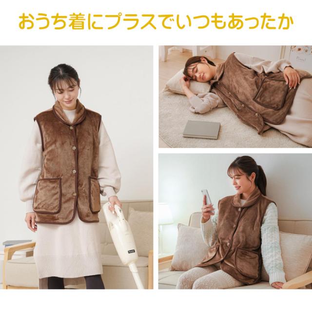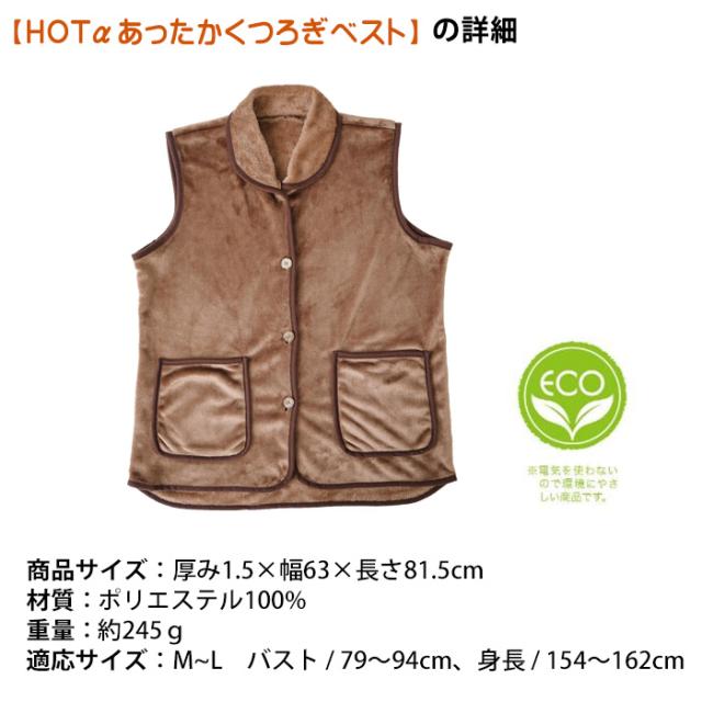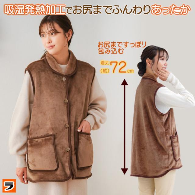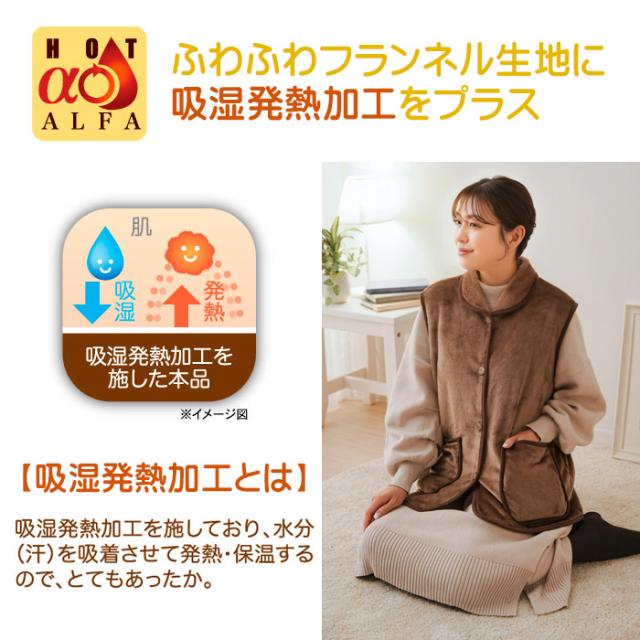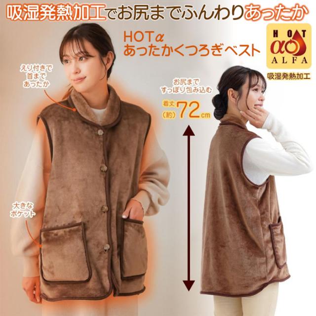 ホットアルファ あったかくつろぎベスト ポケット付き 袖なし 軽量 レディース 部屋着 暖かい ベスト ブラウン 洗える ルームウェア 背中 腰 温め ルームベスト あったかグッズ 冷え対策 暖かグッズ